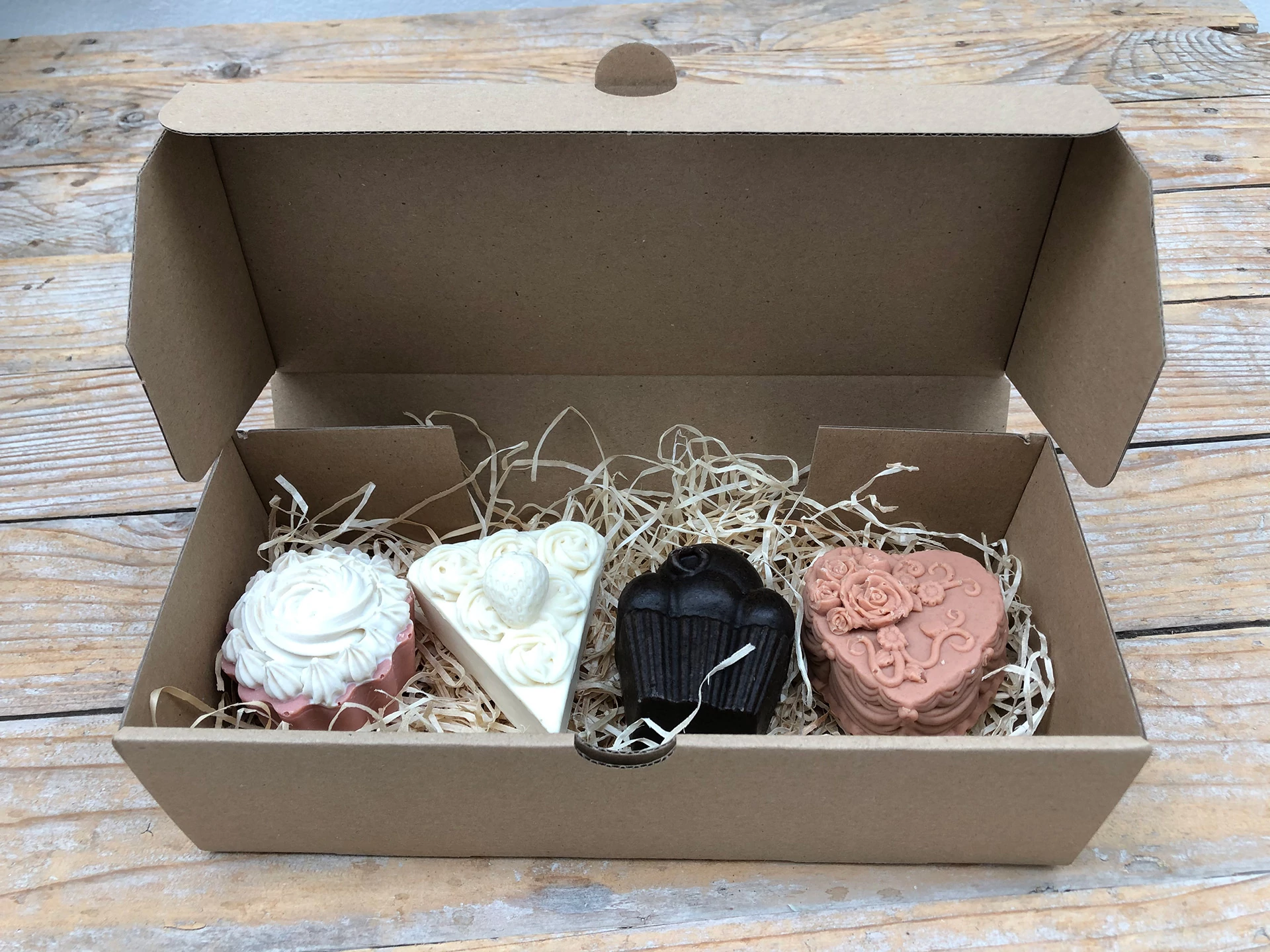 kecsketej-rózsavarázs 80 gr cupcake, 70 gr kecsketej epres torta 70 gr , kávé sz. süti 80 gr Rózsavarázs 90 gr torta